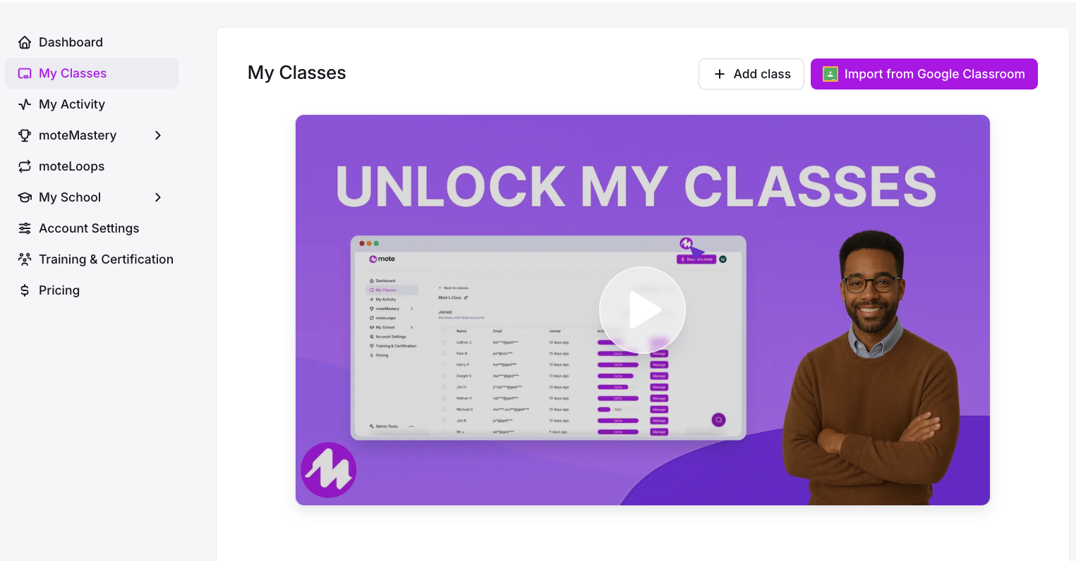 Creating a Mote class allows teachers to monitor and manage their students in a single location. With a Class you can: